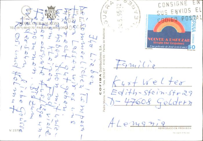 old postcard Paguera Mallorca Islas Baleares Club Galatzo postalisch gelaufen