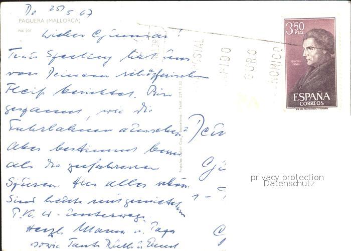 old postcard Paguera Mallorca Islas Baleares Fliegeraufnahme postalisch gelaufen Erhaltung siehe scans