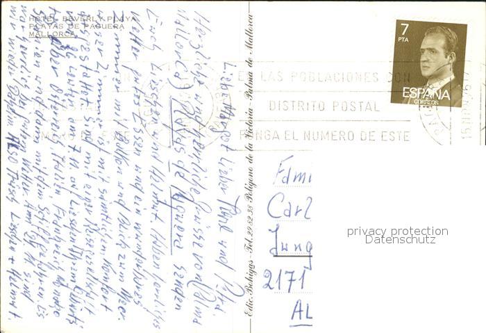 old postcard Paguera Mallorca Islas Baleares Fliegeraufnahme Hotel Beverly Playa postalisch gelaufen Erhaltung siehe scans [LiesaD40]
