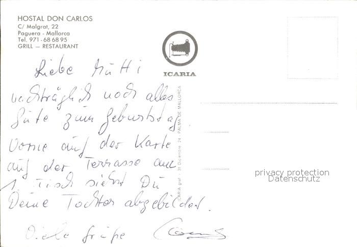 Paguera Mallorca Islas Baleares Hostal Don Carlos postalisch nicht gelaufen Erhaltung siehe scans