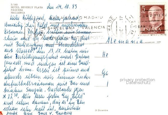 old postcard Paguera Mallorca Islas Baleares Hotel Beverly Playa Tretboot Strand postalisch gelaufen Erhaltung siehe scans [FriedD77]