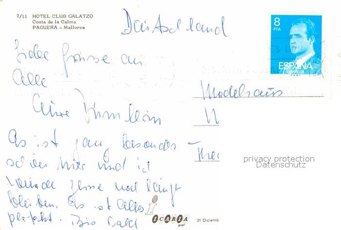 old postcard Paguera Mallorca Islas Baleares Hotel Club Galatzo Swimming Pool postalisch gelaufen Erhaltung siehe scans [FriedD77]