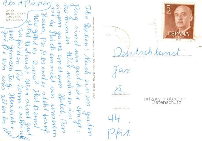 old postcard Paguera Mallorca Islas Baleares Hotel Gaya postalisch gelaufen Erhaltung siehe scans [LiesaD40]