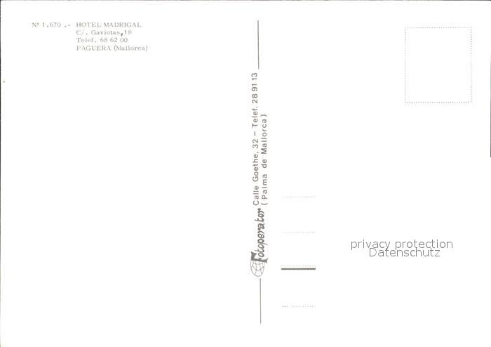 Paguera Mallorca Islas Baleares Hotel Madrigal postalisch nicht gelaufen Erhaltung siehe scans