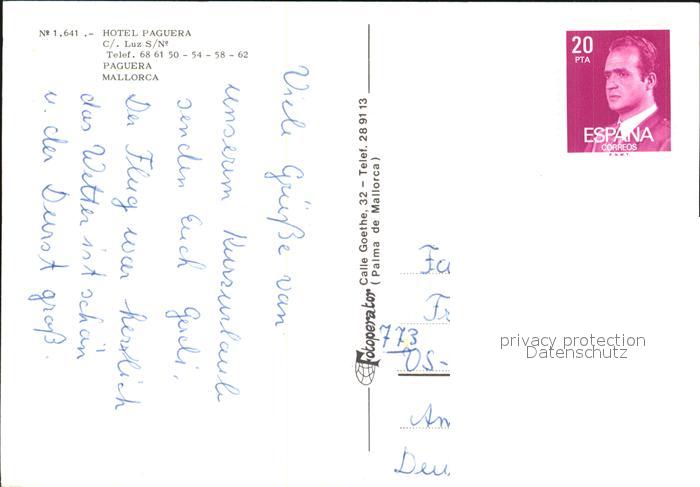 old postcard Paguera Mallorca Islas Baleares Hotel Paguera postalisch gelaufen Erhaltung siehe scans [LiesaD40]