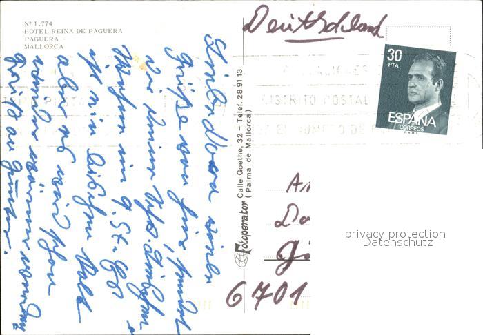 old postcard Paguera Mallorca Islas Baleares Hotel Reina de Paguera postalisch gelaufen Erhaltung siehe scans