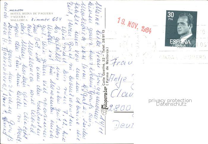 old postcard Paguera Mallorca Islas Baleares Hotel Reina de Paguera postalisch gelaufen Erhaltung siehe scans
