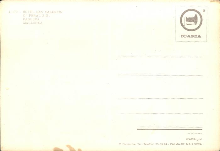 Paguera Mallorca Islas Baleares Hotel San Valentin postalisch nicht gelaufen Erhaltung siehe scans