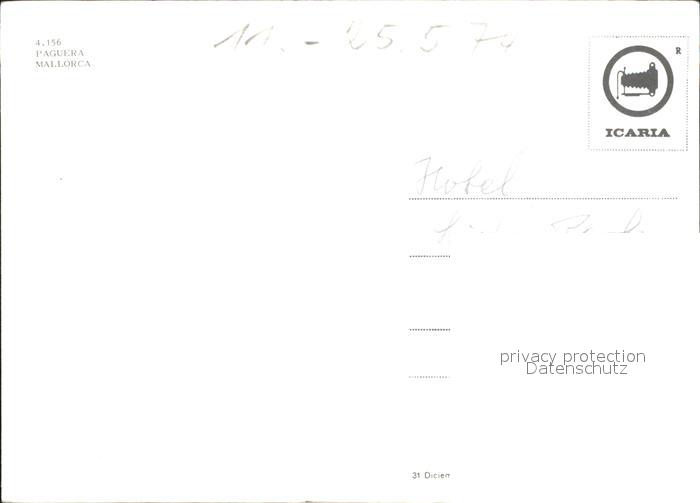 Paguera Mallorca Islas Baleares Hotel Strand postalisch nicht gelaufen Erhaltung siehe scans