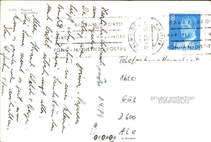 old postcard Paguera Mallorca Islas Baleares Luftbild postalisch gelaufen Erhaltung siehe scans