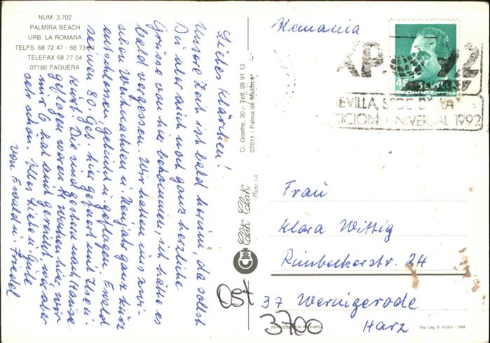 old postcard Paguera Mallorca Islas Baleares Palmira Beach postalisch gelaufen