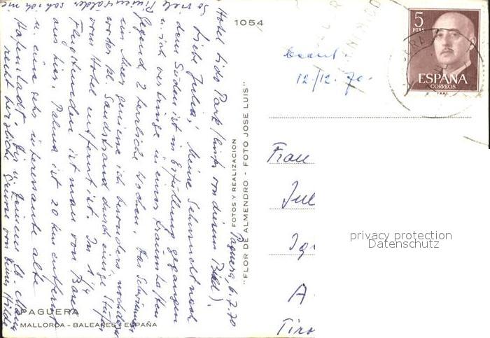 old postcard Paguera Mallorca Islas Baleares Panorama Strand Hotels postalisch gelaufen Erhaltung siehe scans