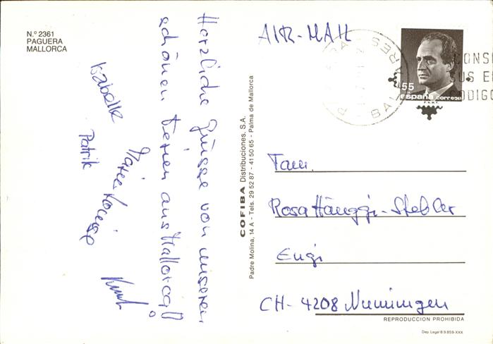 old postcard Paguera Mallorca Islas Baleares Playa postalisch gelaufen