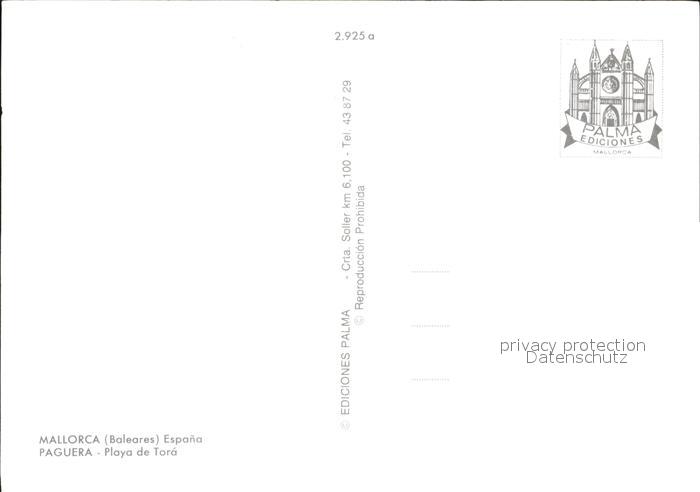 Paguera Mallorca Islas Baleares Playa de Tora postalisch nicht gelaufen Erhaltung siehe scans