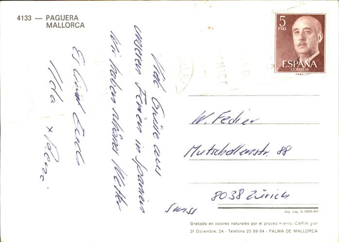 old postcard Paguera Mallorca Islas Baleares Playa Strand postalisch gelaufen Erhaltung siehe scans
