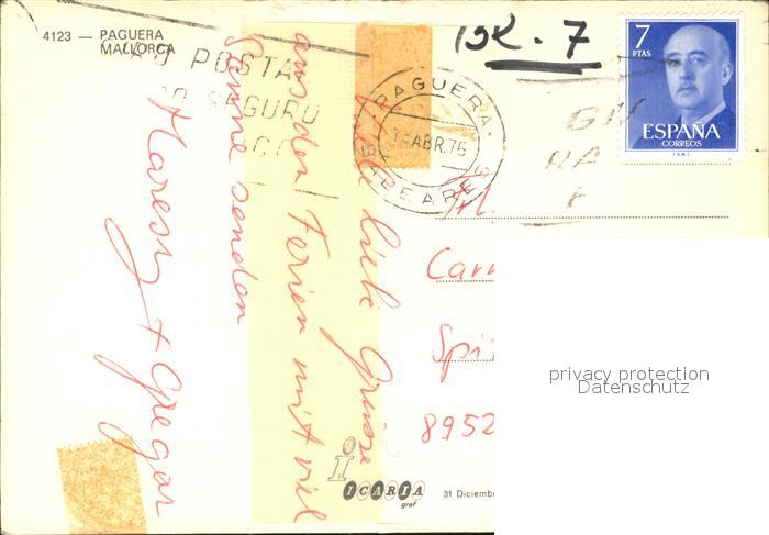 old postcard Paguera Mallorca Islas Baleares Strand postalisch gelaufen Erhaltung siehe scans [NatalD47 kv014box]