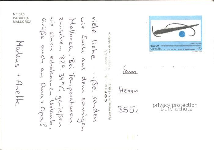 old postcard Paguera Mallorca Islas Baleares Strand postalisch gelaufen Erhaltung siehe scans