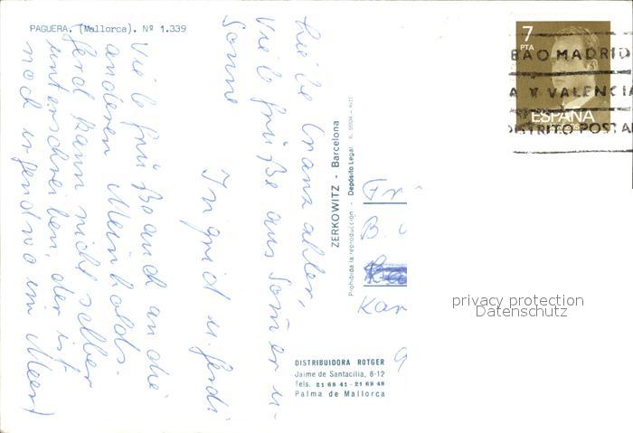 old postcard Paguera Mallorca Islas Baleares Strand Hotels postalisch gelaufen Erhaltung siehe scans