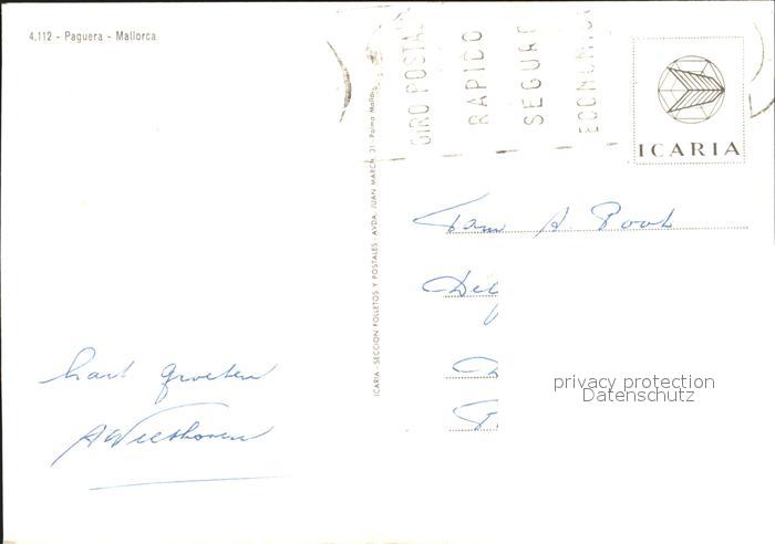 old postcard Paguera Mallorca Islas Baleares Strand Segelboot postalisch gelaufen Erhaltung siehe scans