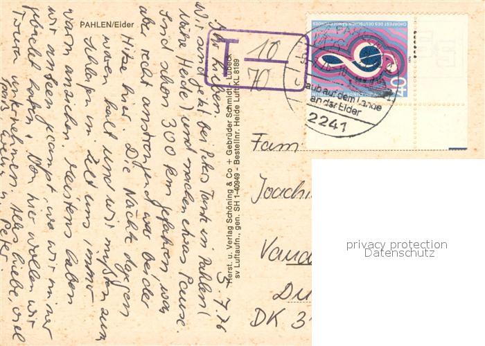 73646529 alte Postkarte Pahlen an der Eider Fliegeraufnahme postalisch gelaufen Erhaltung siehe scans [FriedD77] KatCode: 11110001051088