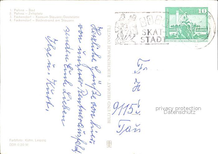 72373090 alte Postkarte Pahna Fockendorf Bad Zeltplatz Konsum Stausee Gaststaette Badestrand postalisch gelaufen Erhaltung siehe scans KatCode: 11110016077005