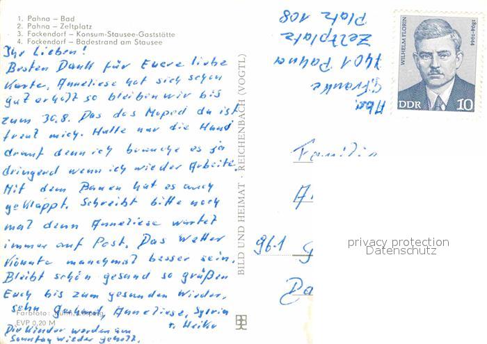 72616324 Pahna Fockendorf Naherholungszentrum Bad Zeltplatz Konsum Stausee Gaststaette Badestrand postalisch nicht gelaufen Erhaltung siehe scans [FriedD77] KatCode: 11110016077005