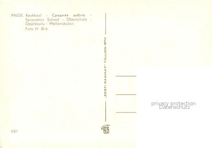 73776284 Paide Estonia Secondary School Oberschule postalisch nicht gelaufen Erhaltung siehe scans [FriedD77] Frie Katcode 11120