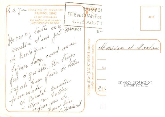 13579030 carte postale Paimpol Le port et les quais Bateaux Voiliers postalisch gelaufen Erhaltung siehe scans [FriedD77] KatCode: 11170022422162