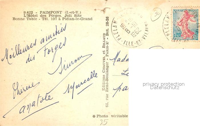 13504662 carte postale Paimpont Hotel des Forges Joli Site postalisch gelaufen Erhaltung siehe scans [LiesaD40] KatCode: 11170035335211
