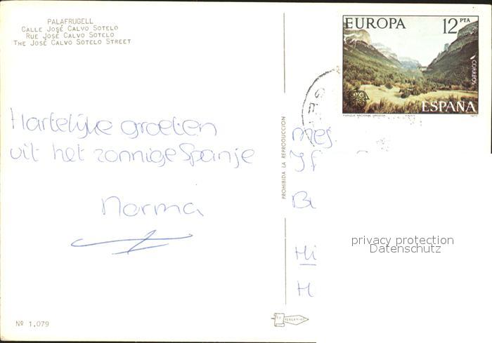 old postcard Palafrugell Calle Jose Calvo Sotelo postalisch gelaufen Erhaltung siehe scans
