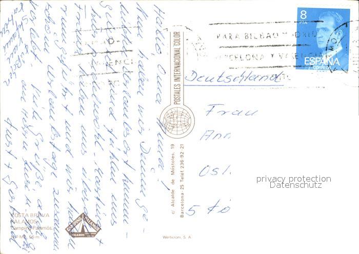 old postcard Palamos Camping Kueste Meerblick postalisch gelaufen Erhaltung siehe scans