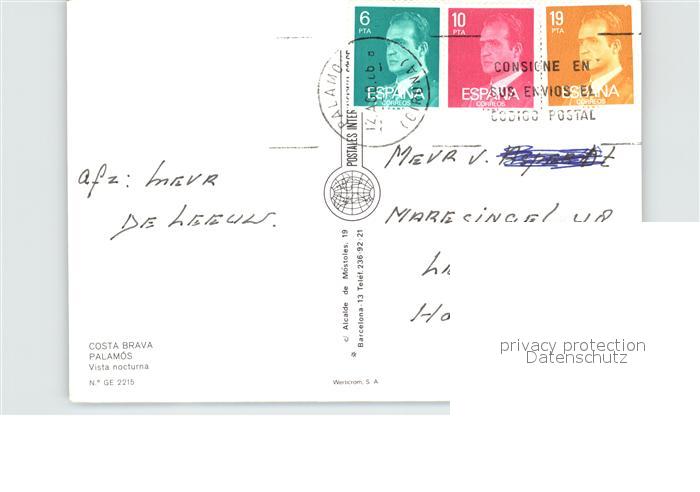 old postcard Palamos Nachtansicht postalisch gelaufen Erhaltung siehe scans