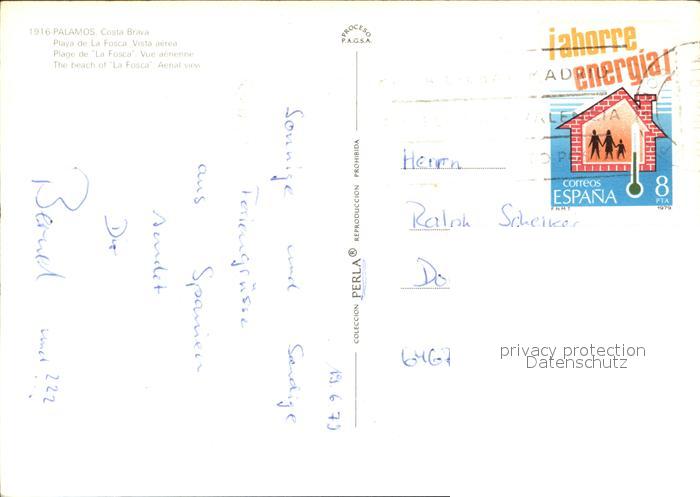 old postcard Palamos Playa de La Fosca Fliegeraufnahme postalisch gelaufen Erhaltung siehe scans [NatalD47 kv014box]