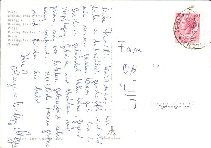 old postcard Palau Sardegna Camping Capo d Orso Spiaggia postalisch gelaufen Erhaltung siehe scans