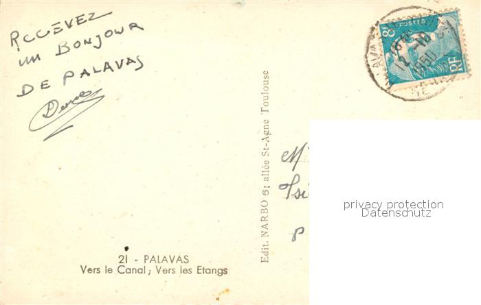13563775 carte postale Palavas-les-Flots Herault Canal vers les étangs postalisch gelaufen Erhaltung siehe scans [FriedD77] KatCode: 11170034334192