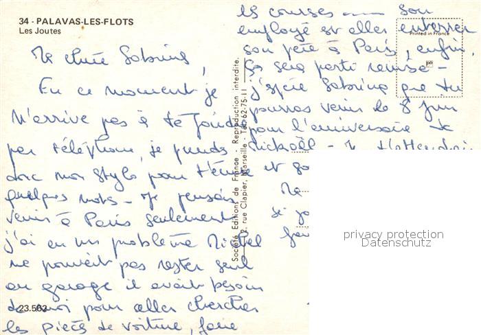 13513532 Palavas-les-Flots Herault Les Joutes postalisch nicht gelaufen Erhaltung siehe scans [WerneD78] KatCode: 11170034334192