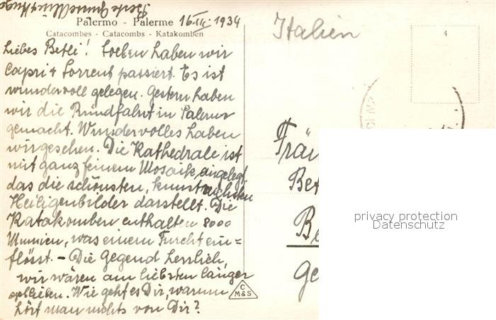 old postcard Palermo Sicilia Catacombe postalisch gelaufen Erhaltung siehe scans [PaolaD17]