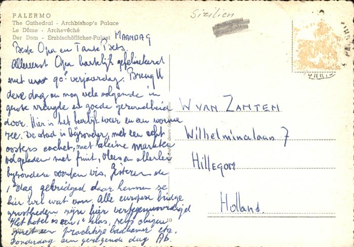 old postcard Palermo Sicilia Dom Erzbischoefl Palast postalisch gelaufen gute Erhaltung