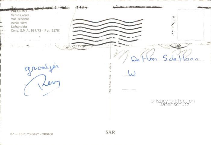 old postcard Palermo Sicilia Fliegeraufnahme postalisch gelaufen Erhaltung siehe scans