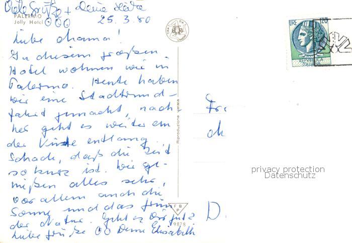 old postcard Palermo Sicilia Jolly Hotel postalisch gelaufen Erhaltung siehe scans [FriedD77]