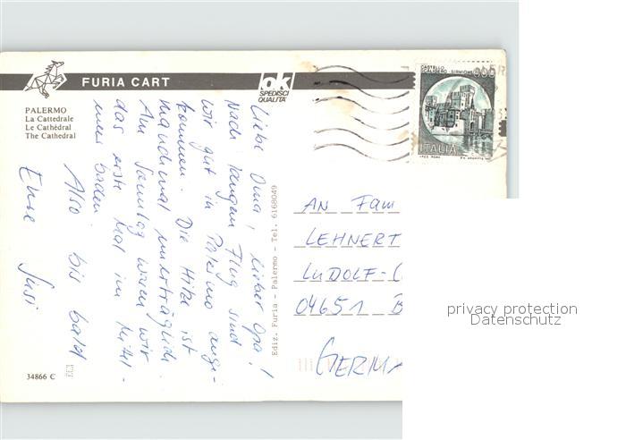 old postcard Palermo Sicilia La Cattedrale postalisch gelaufen Erhaltung siehe scans