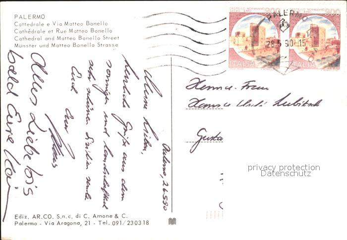 old postcard Palermo Sicilia Muenster Matteo Bonello Strasse postalisch gelaufen Erhaltung siehe scans