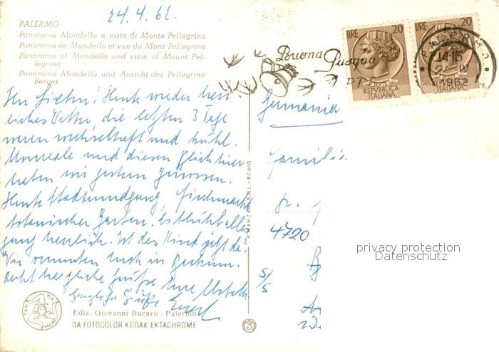 old postcard Palermo Sicilia Panorama Mondello Monte Pellegrino postalisch gelaufen Erhaltung siehe scans [KathaD81]