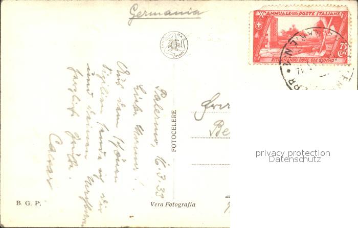old postcard Palermo Sicilia Piazza Castelnuovo Politeama Garibaldi postalisch gelaufen Erhaltung siehe scans