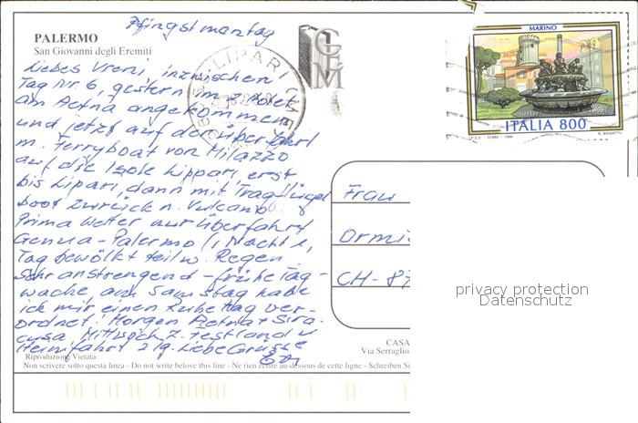 old postcard Palermo Sicilia San Giovanni degli Eremiti postalisch gelaufen Erhaltung siehe scans