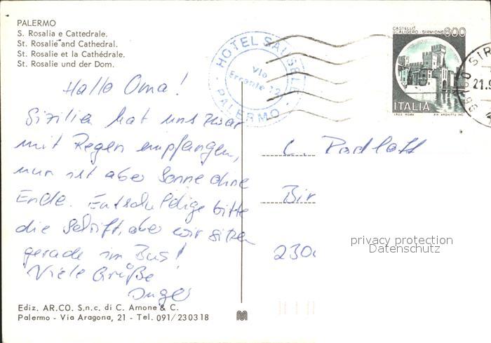 old postcard Palermo Sicilia Santa Rosalia e Cattedrale Santuario postalisch gelaufen Erhaltung siehe scans