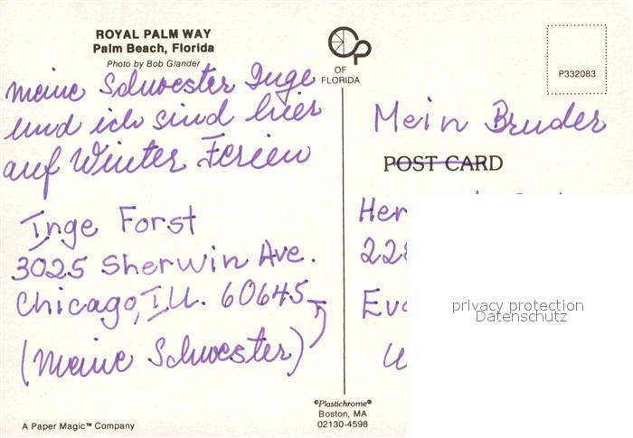 72883000 Palm Beach Royal Palm Way postalisch nicht gelaufen Erhaltung siehe scans [FriedD77] KatCode: 14140110000000