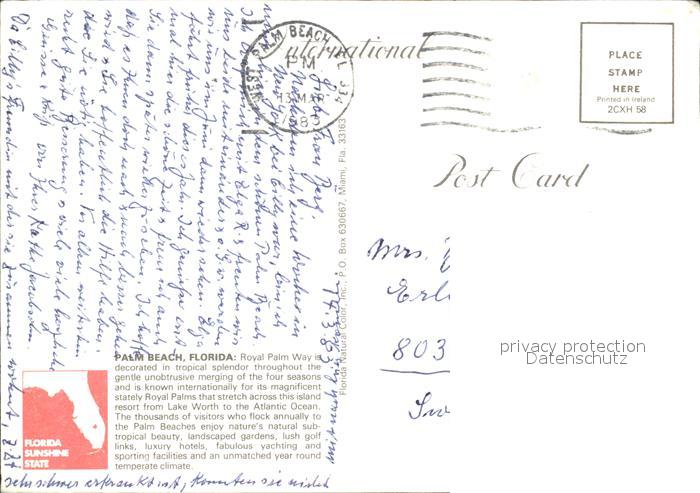 72582810 old postcard Palm Beach Royal Palm Way postalisch gelaufen Erhaltung siehe scans [LiesaD40] KatCode: 14140110000000