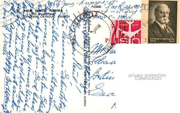 73110861 old postcard Palm Beach St Edwards Catholic Church postalisch gelaufen Erhaltung siehe scans [NatalD47] KatCode: 14140110000000