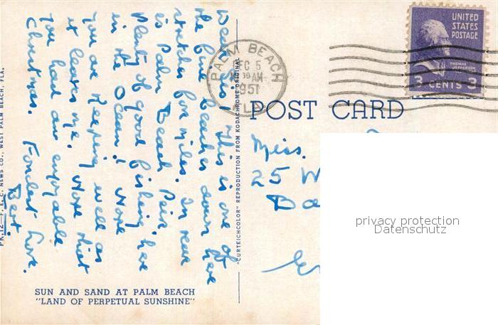 73127746 old postcard Palm Beach Strand postalisch gelaufen Erhaltung siehe scans [KathaD81] KatCode: 14140110000000